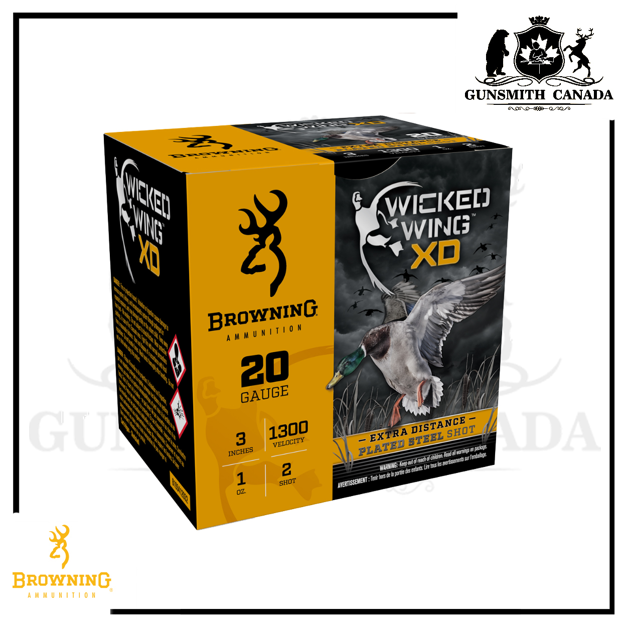 Marque: Browning Série: WICKED WING XD Waterfowl Calibre: 20Ga × 3″ Taille: #2 Poids: 1 oz Boîte de 25 cartouches MFC: B193412032